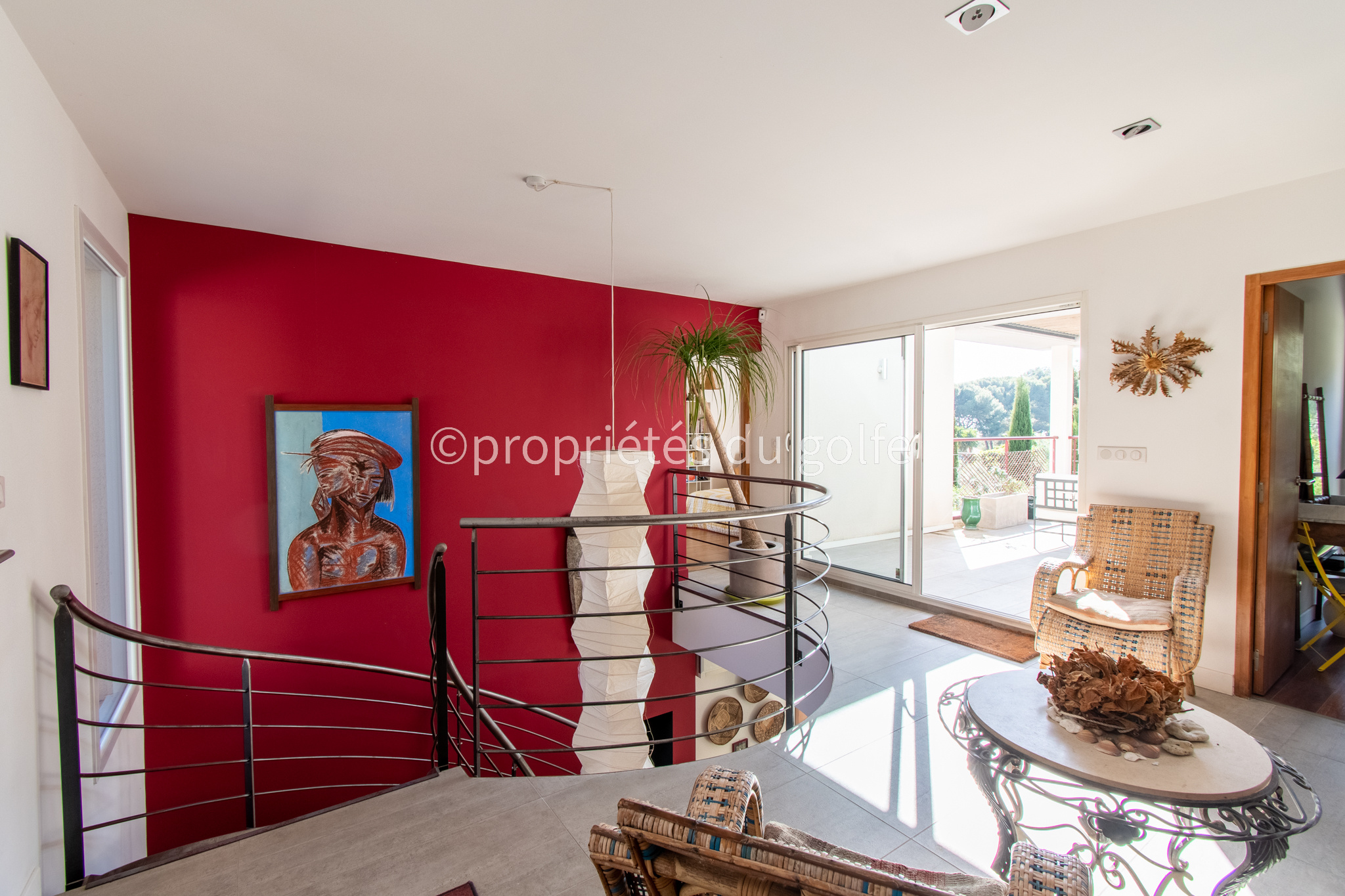 Votre agence PROPRIETES DU GOLFE, vous propose, en exclusivité, ce bien de grande qualité situé sur le bas du mont Saint Clair, versant sud, dans une impasse calme, tout en étant proche des commodités du quartier de la Corniche et de ses magnifiques criques. Cette villa réalisée en 2013 par un architecte de renom, vous séduira par sa qualité de construction, ses prestations soigneusement selectionnées, son style contemporain et chaleureux. Le logement d'une superficie habitable de 142m² environ se compose d'un niveau s'ouvrant directement sur une grande terrasse prolongée par le jardin joliment paysagé ; une pièce de vie de 54.50m² comprenant un séjour/salon avec cheminée (insert), une cuisine parfaitement équipée avec son cellier, une cave, un agréable bureau. L'espace nuit au 1er étage se compose d'un hall/vestiaire de 15m² donnant sur une terrasse avec vue dégagée, une suite parentale (avec salle d'eau et dressing), deux autres chambres et une seconde salle d'eau. Le terrain de 1000m² est plat, pensé et réalisé par un paysagiste ; comme un peintre, il a travaillé, disposé, différentes essences méditerranéennes en créant des espaces intimes ou conviviaux. Un magnifique espace piscine (3mx10m), ensoleillé, habillé de jasmins, d'agrumes et d'oliviers. Pour plus de confort, la propriété comprend un garage de 24m² et de plusieurs stationnements.Environnement résidentiel, protégé des vents dominants. Le logement dispose de panneaux solaire. REF 948