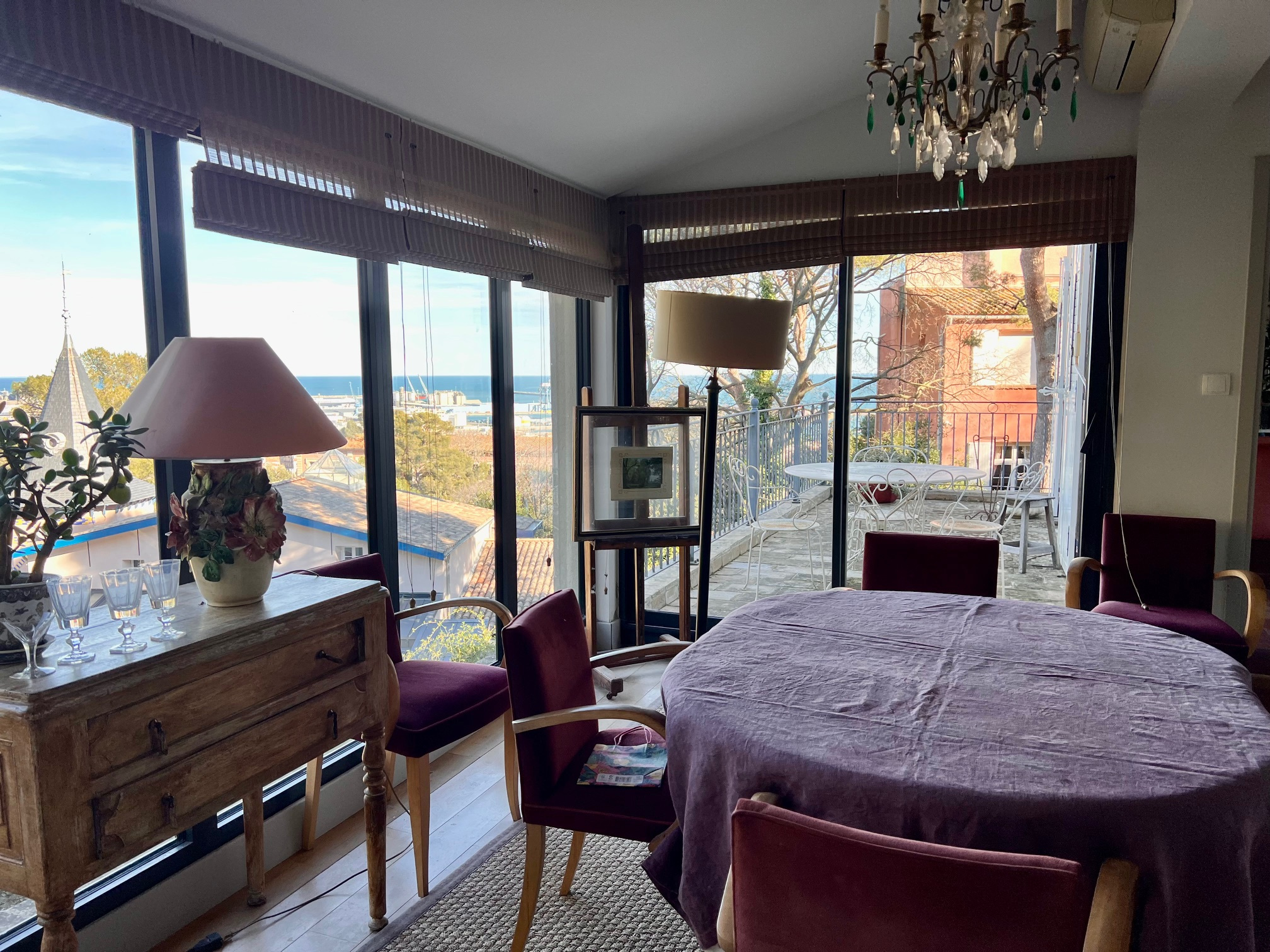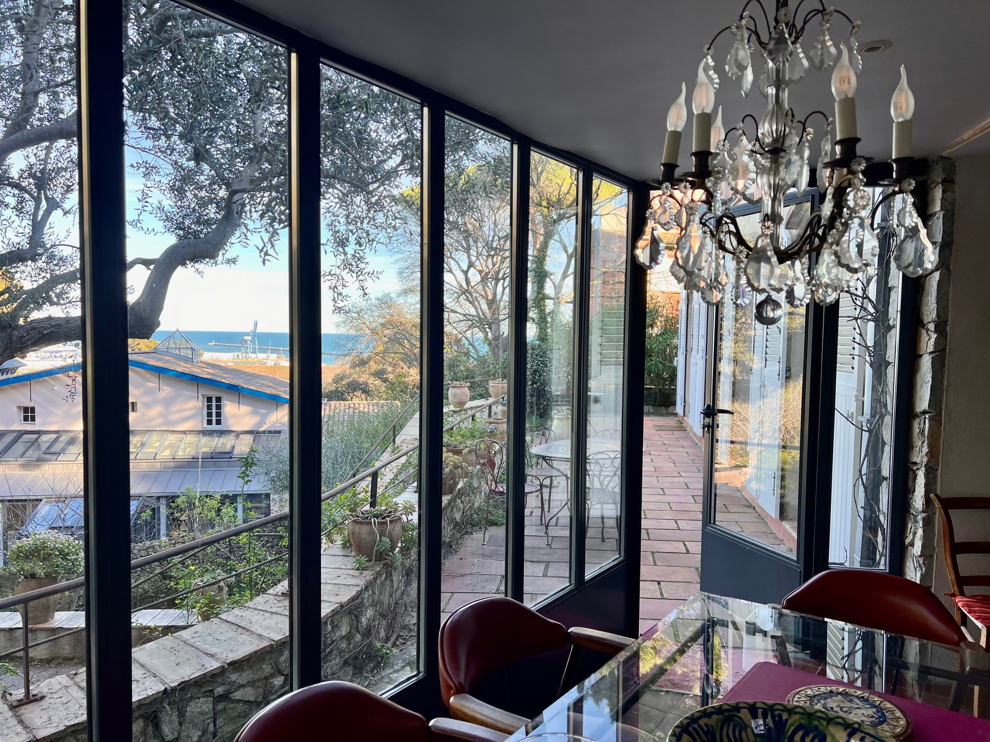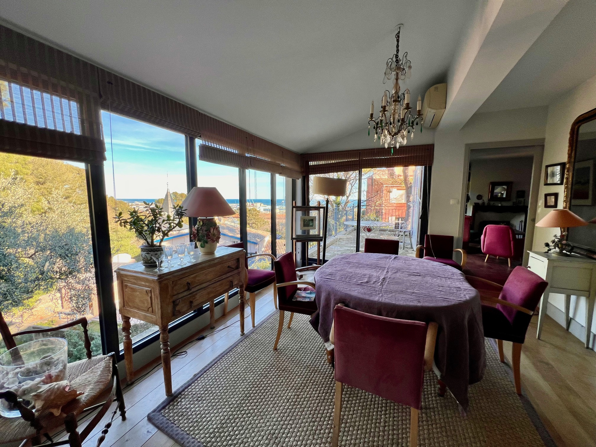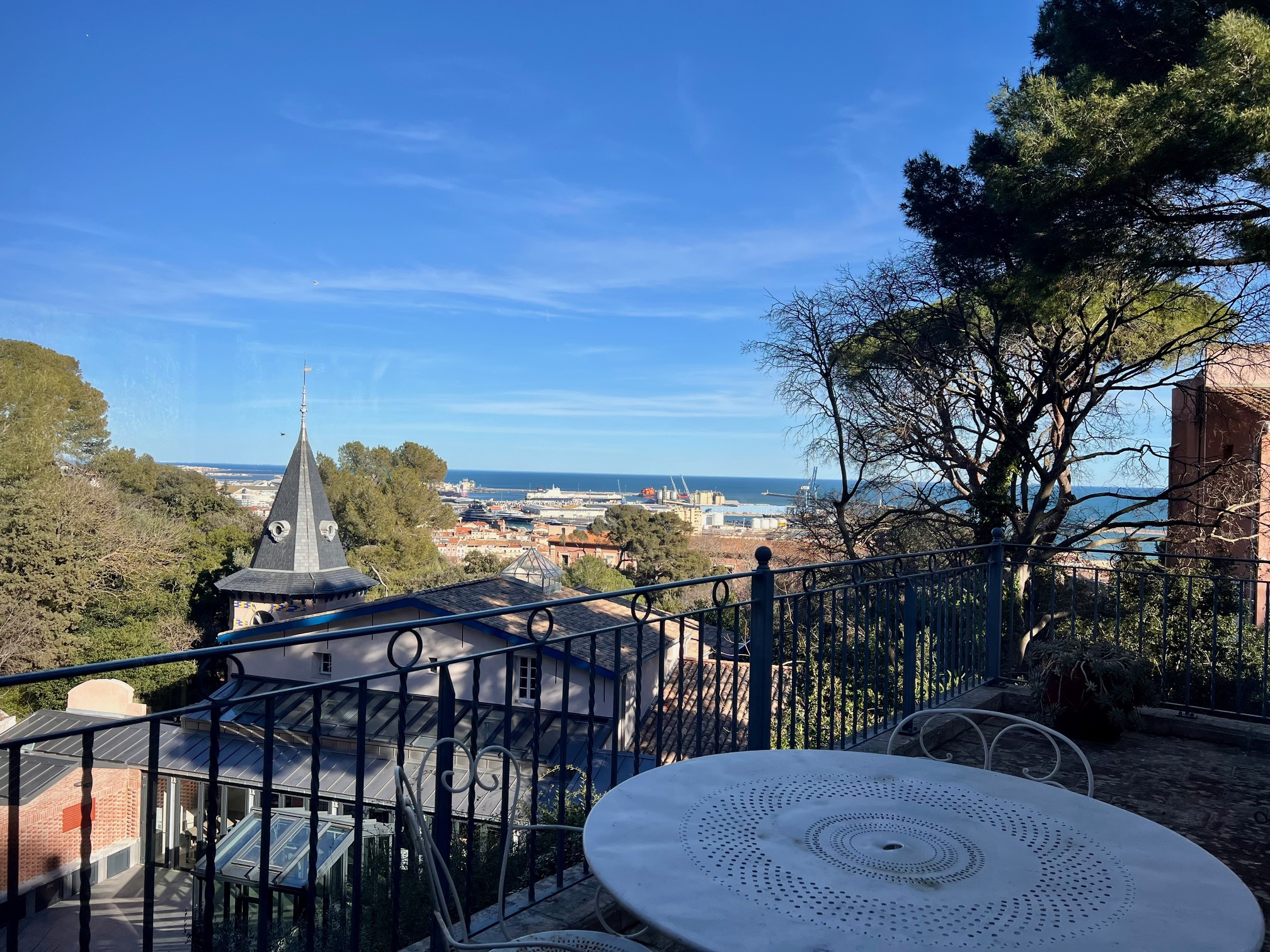 Sur les hauteurs de Sète, versant Est du mont Saint Clair, cette propriété singulière bénéficie d'une situation privilégiée au fond d'une impasse paisible à l'abri de toute agitation. Dominant la ville et la pleine mer, elle offre une vue panoramique. Entièrement réagencée avec soin, la maison a été pensée pour conjuguer harmonieusement vie privée et activité d'accueil. D'une superficie d'environ 190m² répartis sur deux niveaux, elle séduit par son charme et son atmosphère chaleureuse. Au niveau de l'entrée se développe une partie privative indépendante de 90m² environ. Elle comprend une entrée, salle à manger-séjour avec cheminée, une terrasse offrant une vue mer, une cuisine, deux chambres dont une avec annexe, une salle d'eau. En rez-de-jardin, trois élégantes suites destinées aux hôtes, disposent chaucune d'une entrée indépendante. Une agréable salle à manger dédiée aux petits-déjeuners ou autre, sublimée par une verrière sur mesure crée une ambiance raffinée. Ce niveau bénéficie d'une cuisine équipée et d'une buanderie. Le terrain de 1350m² profite d'une belle ambiance méditerranéenne avec des espaces ombragés ou ensoleillés au tour d'une agréable piscine. Plusieurs stationnements complètent le confort de la propriété. Environnement calme et résidentiel. REF 1377