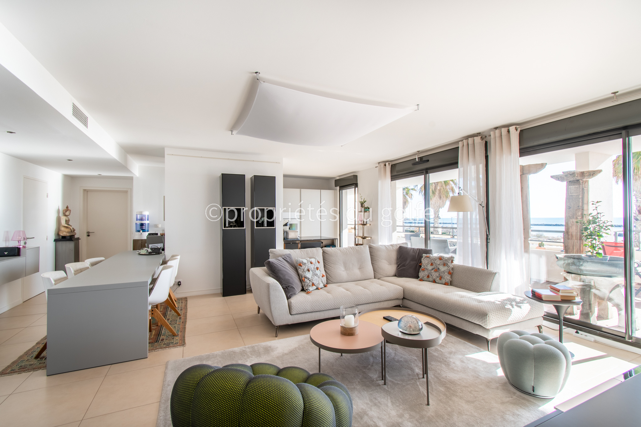 Face à la méditerranée, découvrez un lieu unique où l'élégance et confort se conjuguent à la perfection. Cet appartement de prestige 5 pièces situé dans le quartier des plages de la ville de Sète d'une superficie habitable de 141m² s'ouvrant sur un terrasse de 70m² aux lignes généreuses, prolongée par des jardinières, offrant une vue mer panoramique. Dès l'entrée votre regard sera immédiatement attiré par une vue mer époustouflante et un vaste espace de vie de plus de 50m² accueille un séjour-salon et une cuisine haut de gamme équipée Bulltop et Gaggenau. Une réserve et une douche de retour de plage viennent compléter ce confort pensé dans les moindres détails. L'espace nuit propose quatre chambres élégantes, dont deux s'ouvrent directement sur la terrasse et profitent d'une pleine vue mer. Deux chambres disposent de leur salle de bains ou salle d'eau privative avec dressing/rangements, tandis qu'une spacieuse salle d'eau supplémentaire vient desservir harmonieusement les deux autres autres chambres. Les prestations sont de belle qualité: une résidence de standing sécurisée avec jardin paysager, double garage en sous-sol cellier privatif et places de stationnement pour les invités. Idéalement située, la résidence s'inscrit dans un cadre unique, au pied de la plage et de la voie verte reliant le centre ville de Sète à la Marseillan-Plage (promenade, vélo, roller-skating, course à pied... ). Proche des commerces, des transports en commun, de Montpellier et de ses grands axes routiers. Le logement est vendu avec des meubles de qualité soigneusement selectionnés pour un confort et une belle harmonie. REF 1321
