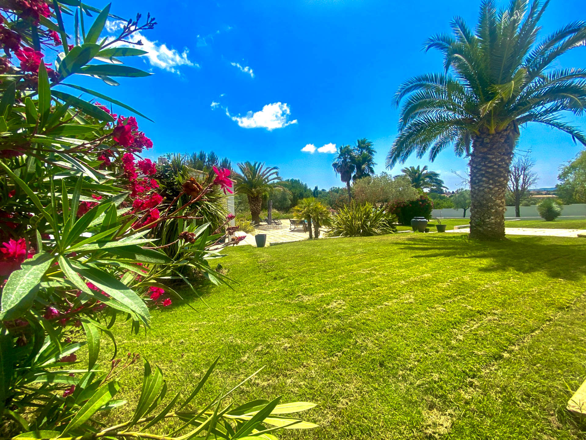 Située dans un village de charme prisé à quelques minutes de Montpellier, entre mer et garrigue, cette villa d'exception offre un art de vivre rare dans un environnement privilégié. Nichée au calme absolu, sans aucun vis-à-vis, la propriété bénéficie d'une vue dégagée et d'un cadre naturel préservé. Développant environ 330m² habitables, la demeure séduit par ses volumes majestueux, ses hauteurs sous plafond remarquables et ses espaces de réception baignés de lumière, ouverts sur de larges terrasses et un jardin paysager propice à la sérinité. L'espace nuit accueille cinq chambres dont trois superbes suites parentales avec salles d'eau privatives, offrant confort et intimité à chacun. Une maison indépendante de 60m² environ idéalement située face à la piscine, constitue un espace parfait pour recevoir famille et invités en toute autonomie. Les prestations annexes sont à la hauteur du bien : garage de 90m² environ pouvant accueillir plusieurs véhicules, abri voiture double, bureau indépendant de 30m². La piscine aux dimensions généreuses ( 15x7m) s'intégre harmonieusement au coeur du parc arboré et clos de 3800m² véritable écrin de verdure. Construction traditionnelle, prestations de grande qualité, chauffage au sol, climatisation : chaque détail a été pensé pour conjuguer élégance, confort et excellence. Un bien rare, confidentiel, destiné à une clientèle exigeante en quête d'un cadre de vie exceptionnel. REF 1365