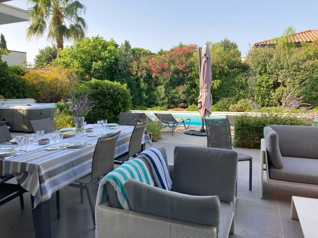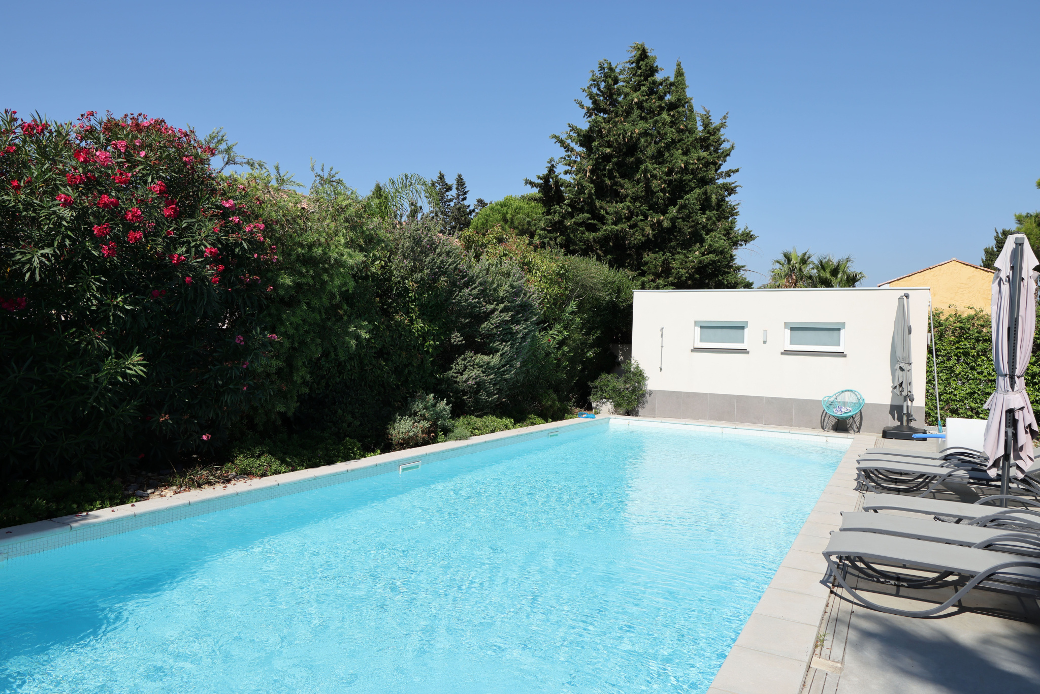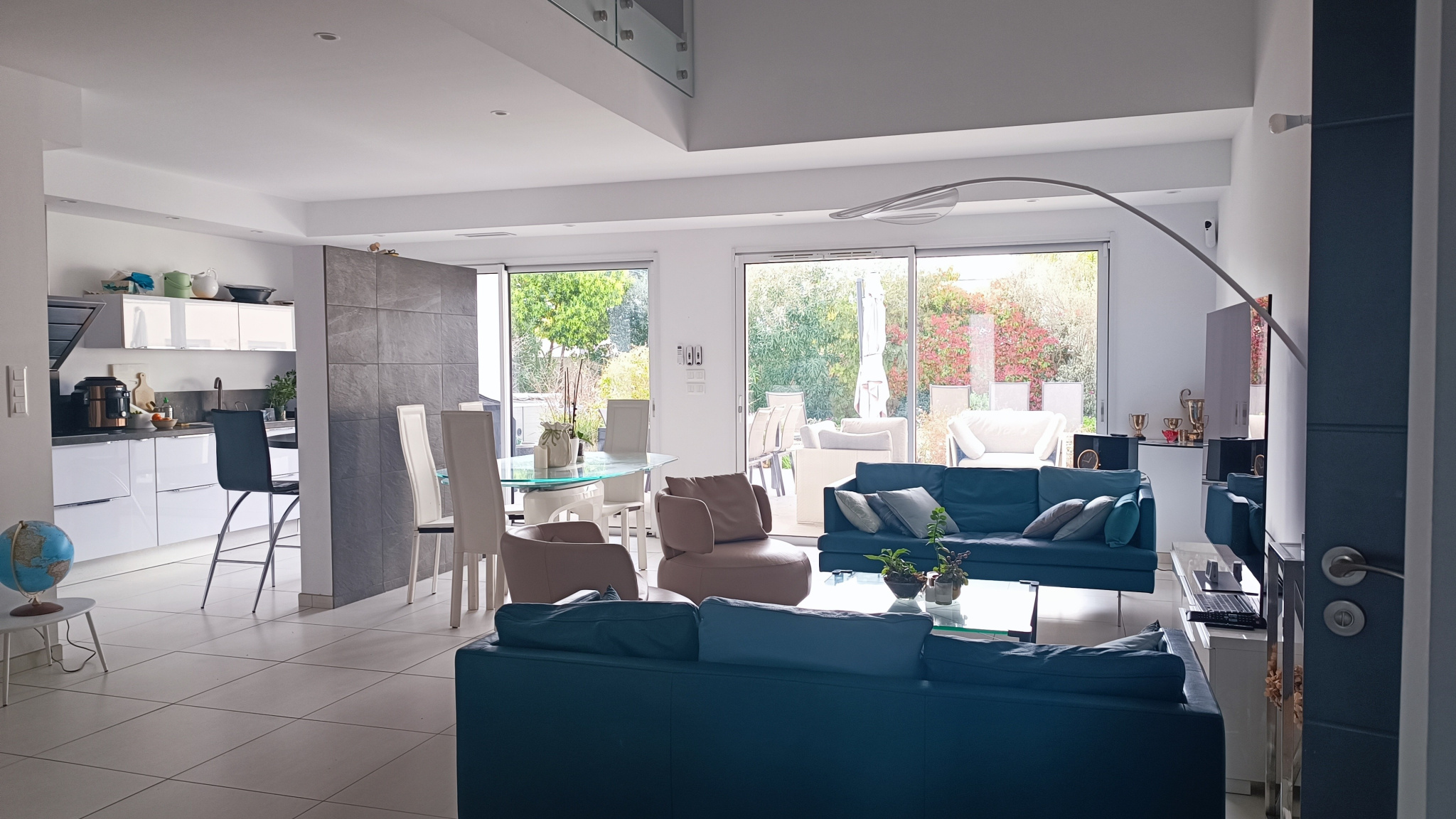 Dans l'un des quartiers les plus recherchés du Grau d'Agde, découvrez cette belle villa contemporaine de 186m² habitable, construite en 2015, alliant élégance architecturale et prestations de qualité. Dès l'entrée, vous serez séduit par un vaste espace de vie baigné de lumière, aux volumes généreux, comprenant un séjour/salon, une cuisine semi-ouverte, parfaitement équipée, buanderie ; le tout ouvert sur une magnifique terrasse qui se prolonge harmonieusement vers une piscine traditionnelle, entourée d'une plage, un espace jacuzzi, invitant à la détente et à la convivialité. Sur ce même niveau, deux confortables suites, idéales pour un confort de vie optimal, bureau. A l'étage, trois chambres supplémentaires se partagent une confortable salle d'eau, avec un élégant vide sur séjour sublimé par un garde-corps en verre, renforçant la sensation d'espace. Les prestations sont à la hauteur du bien: climatisation réversible gainée en rez-de-chaussée et système indépendant à l'étage, panneaux photovoltaïques, espace bien-être avec douche/ hammam, arrosage automatique. Les extérieurs, soigneusement paysagés dans un esprit méditerranéen sur un terrain clos de 800m². Un garage, un grand local piscine, places de stationnement viennent compléter ce bien. Une villa contemporaine idéale pour vivre en bord de mer. REF 1394