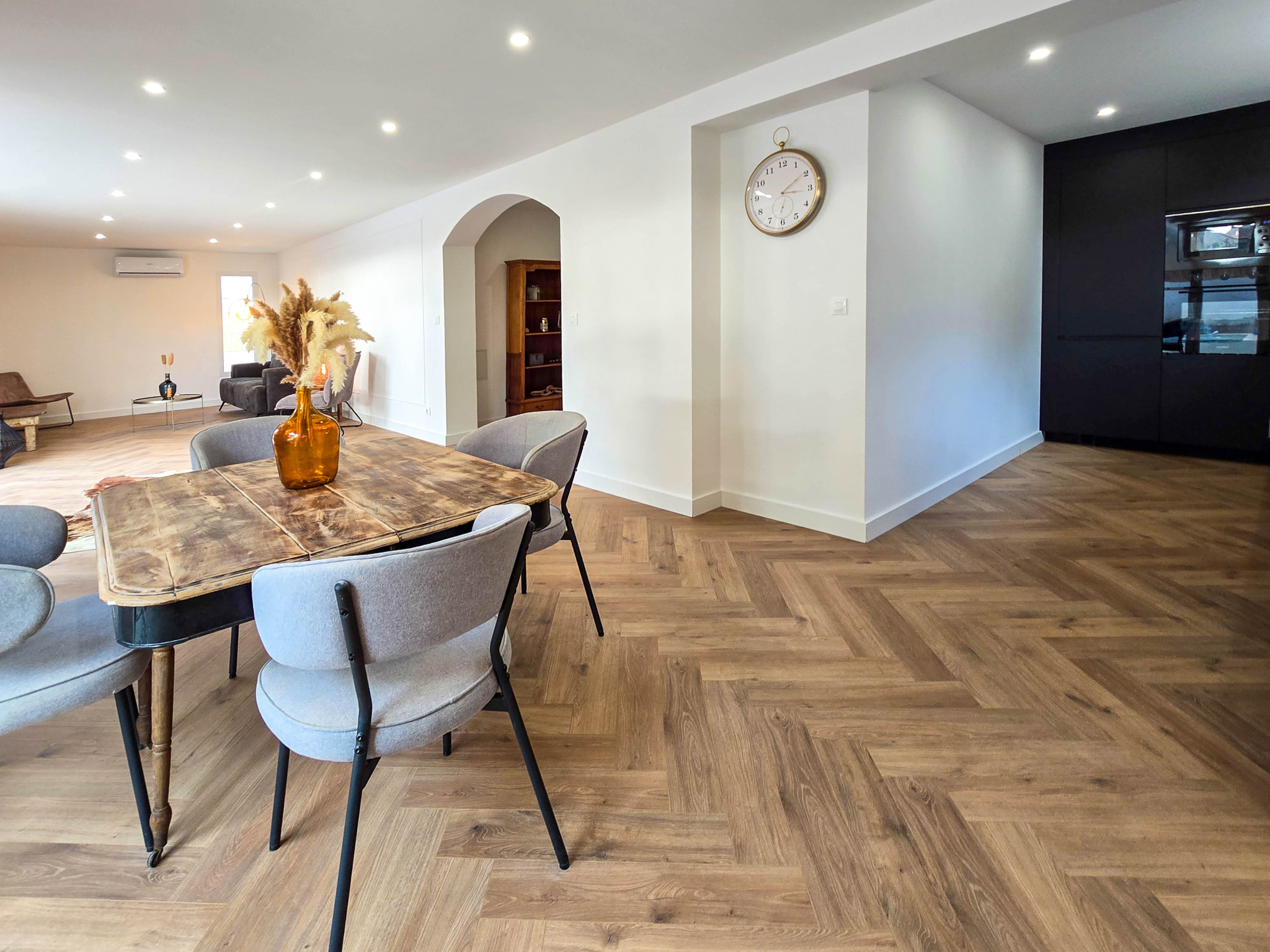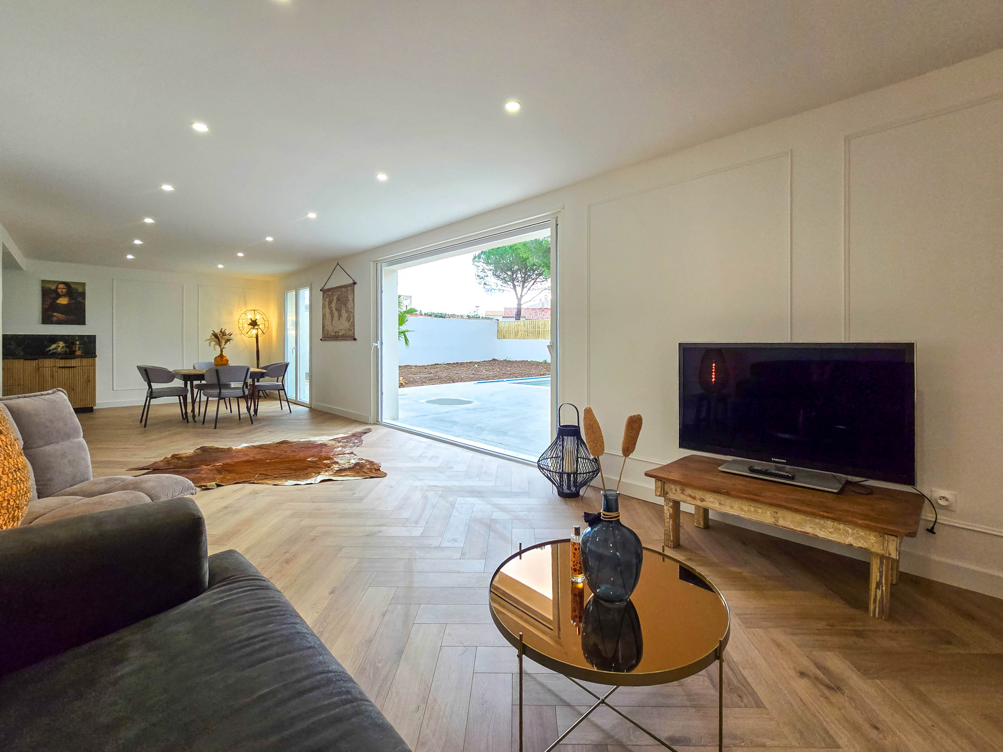 Située proche de l'agréable village de Balaruc-les-Bains, dans un environnement calme et prisé, nous vous proposons cette villa 6 pièces entièrement rénovée et repensée, bénéficiant de prestations actuelles, d'une superficie d'environ 160 m² habitables sur une parcelle de 595 m² avec son espace piscine.Dès l’entrée, vous serez séduit par les volumes généreux et la luminosité. Le séjour/salon avec cuisine ouverte offre un espace de vie convivial et moderne, largement tourné vers l’extérieur grâce à de belles ouvertures donnant sur la terrasse et le jardin paysagé.Le rez-de-chaussée accueille une suite parentale avec salle d’eau, idéale pour une vie de plain-pied.À l’étage, la maison propose quatre chambres, dont une suite avec salle d’eau bénéficiant d’un accès à une terrasse privative, ainsi qu’une salle de bains indépendante. Les extérieurs, soigneusement aménagés, invitent à la détente autour de la piscine, dans un cadre agréable sans vis-à-vis. Secteur recherché de Balaruc-les-bains. REF 1401